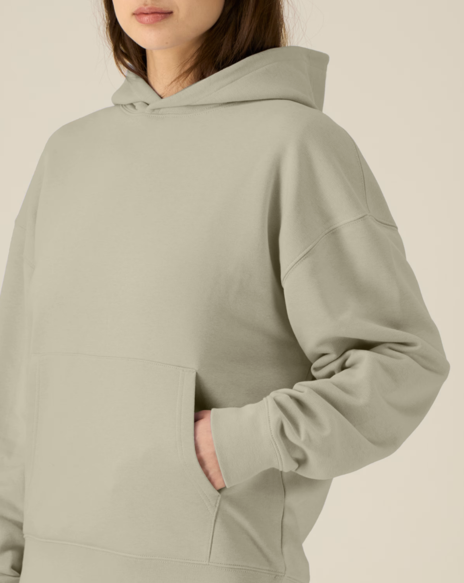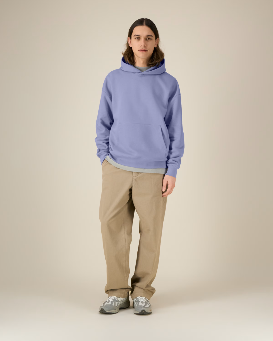 A trendy relaxed fit hoodie in 280gsm brushed fabric, without drawcord for a minimalist look. – perfect for music merch, customisation and branding.