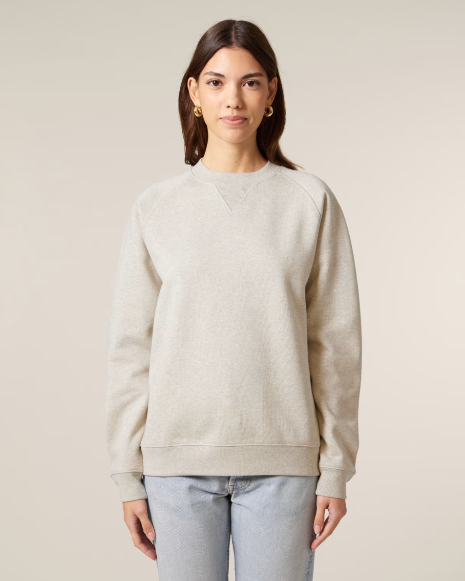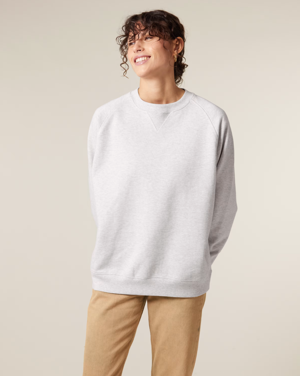 Premium, unisex, relaxed raglan crew neck sweatshirt in 100% organic cotton, 400gsm. Inspired by heritage American sportswear styles.